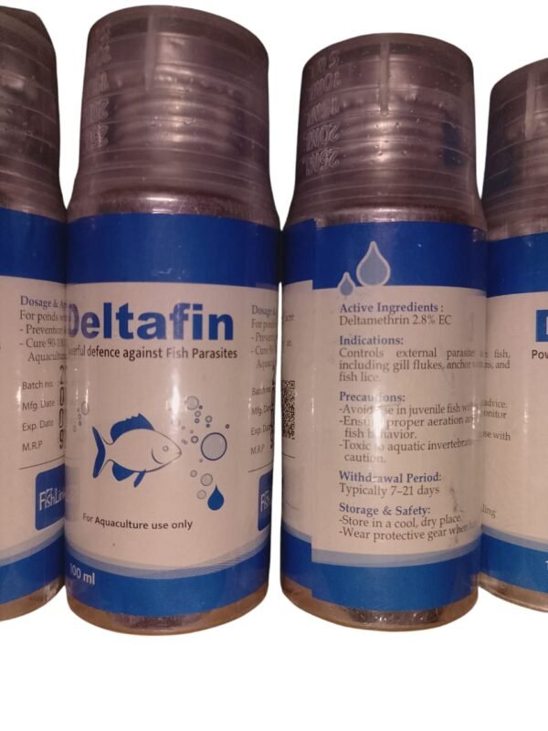 • উপাদান: ডেলটামেথ্রিন ২.৮% ব্যবহারক্ষেত্র: মাছের উকুন ও পরজীবী দমনে দ্রুত, শক্তিশালী পরিবেশবান্ধব এবং নিরাপদ কার্যকর সমাধান।মাত্রা ও প্রয়োগবিধি: ৩-৫ ফুট গভীর জলাশয়ের জন্য চাষ পুকুরে প্রতি শতকে ১ মি.লি. এবং নার্সিং পুকুরে প্রতি শতকে ০.২৫ মি.লি.উৎপাদনকারী দেশ: চীন/ভারত